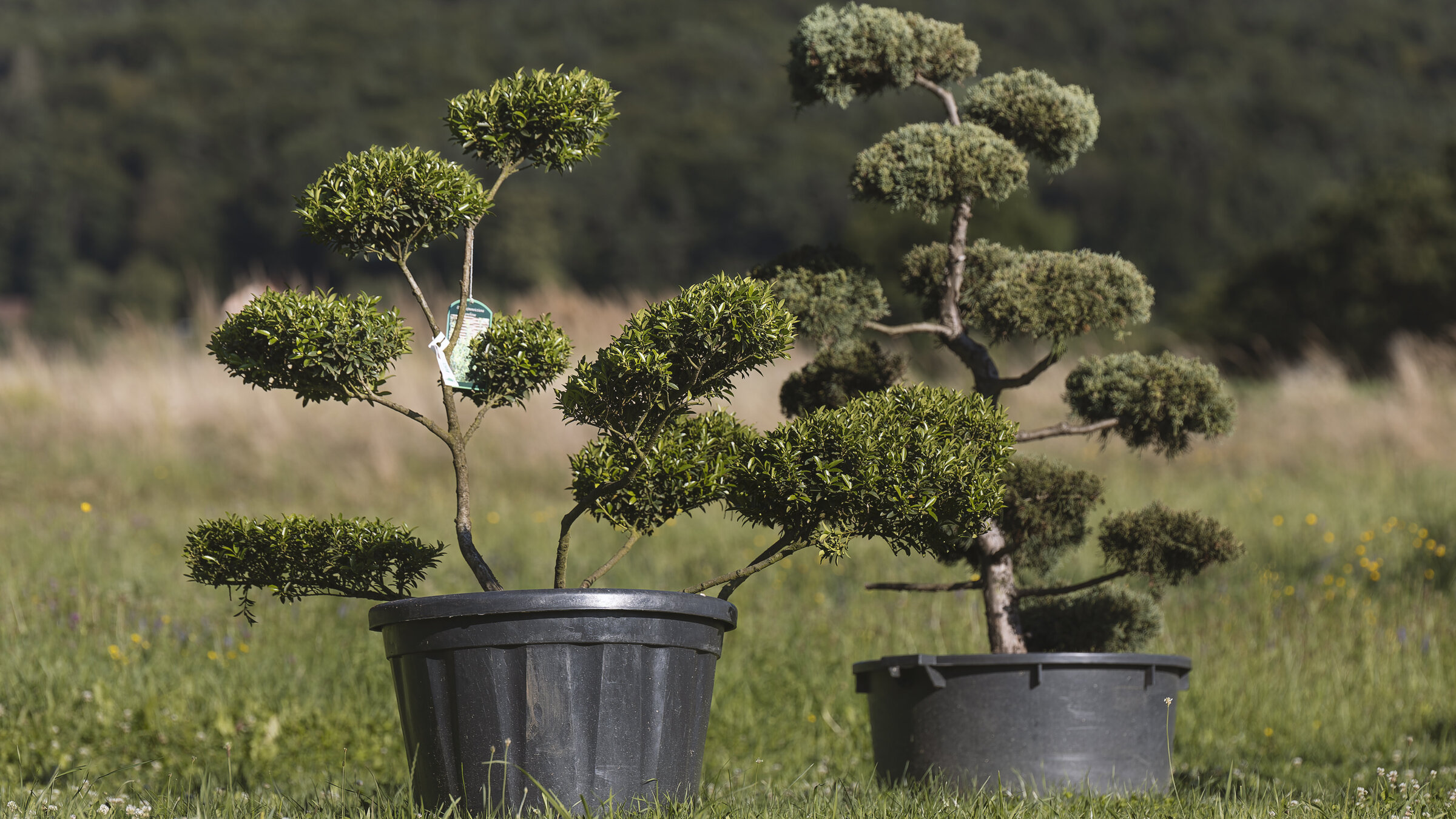Von Ahorn, Ginkgo und Seidenbaum bis zu Amberbaum und Linde, von Pinien, Kiefern und Mammutbaum – alle Pflanzen stammen aus bewährten Baumschulen und zeichnen sich durch hohe Qualität und fachgerechte Kulturführung aus. Erhältlich als Hängeform, Kugelform, Solitär oder in XXL-Größe.